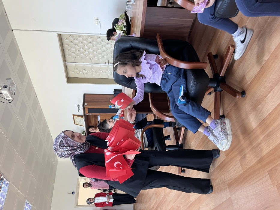Program kapsamında gerçekleştirilen sembolik makam devri ile çocuklar kısa süreliğine yöneticilik deneyimi yaşarken, etkinlik pasta ve meyve suyu ikramı ile devam etti. Bayraklar ve küçük hediyelerle çocukların bayram sevinci pekiştirildi.