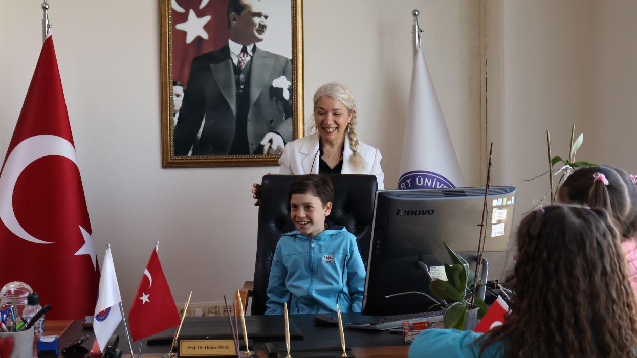 23 Nisan Ulusal Egemenlik ve Çocuk Bayramı kapsamında fakültemizde anlamlı ve renkli bir etkinlik düzenlendi. Rektörlük Makamının ilgili yazısı doğrultusunda 20 Nisan 2026 Pazartesi günü saat 09.30’da Fakülte Dekanlığında gerçekleştirilen programa, Vali Fahrettin İlköğretim Okulu 1. sınıf öğrencileri konuk oldu. Bayram coşkusunun hep birlikte yaşandığı etkinlikte, çocukların neşesi ve heyecanı günün en dikkat çekici unsuru oldu.