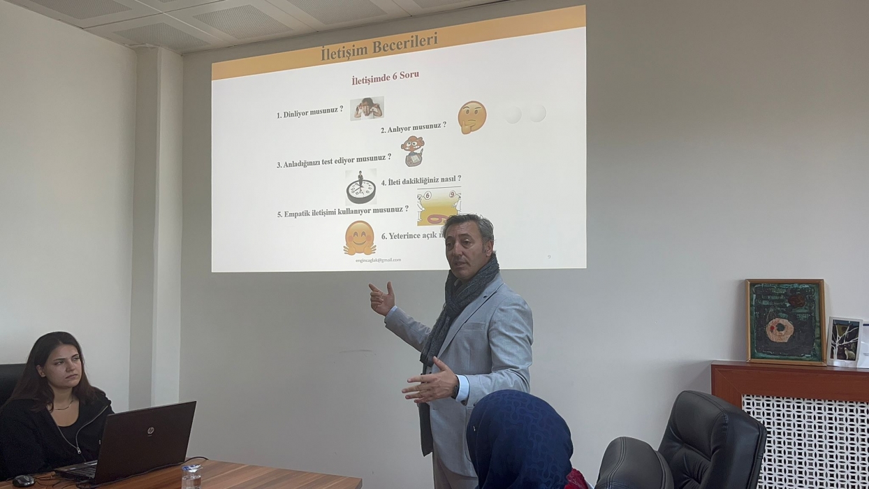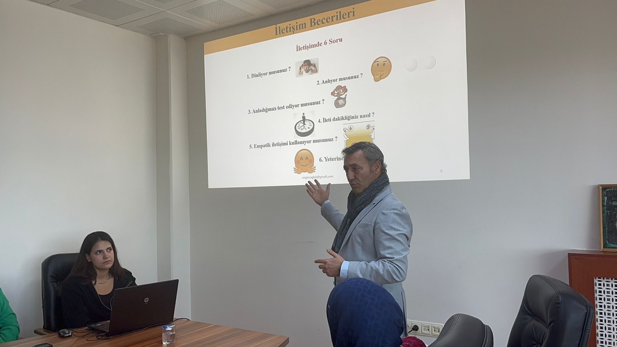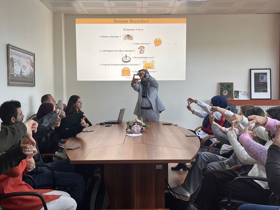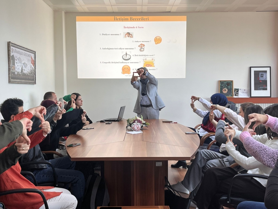 ÇOMÜ İLETİŞİM FAKÜLTESİ'NDE FAKÜLTE PERSONELİ VE İŞKUR KAPSAMINDA GÖREV YAPAN ÖĞRENCİLERE YÖNELİK “ETKİLİ İLETİŞİM BECERİLERİ” EĞİTİMİ VERİLDİ.